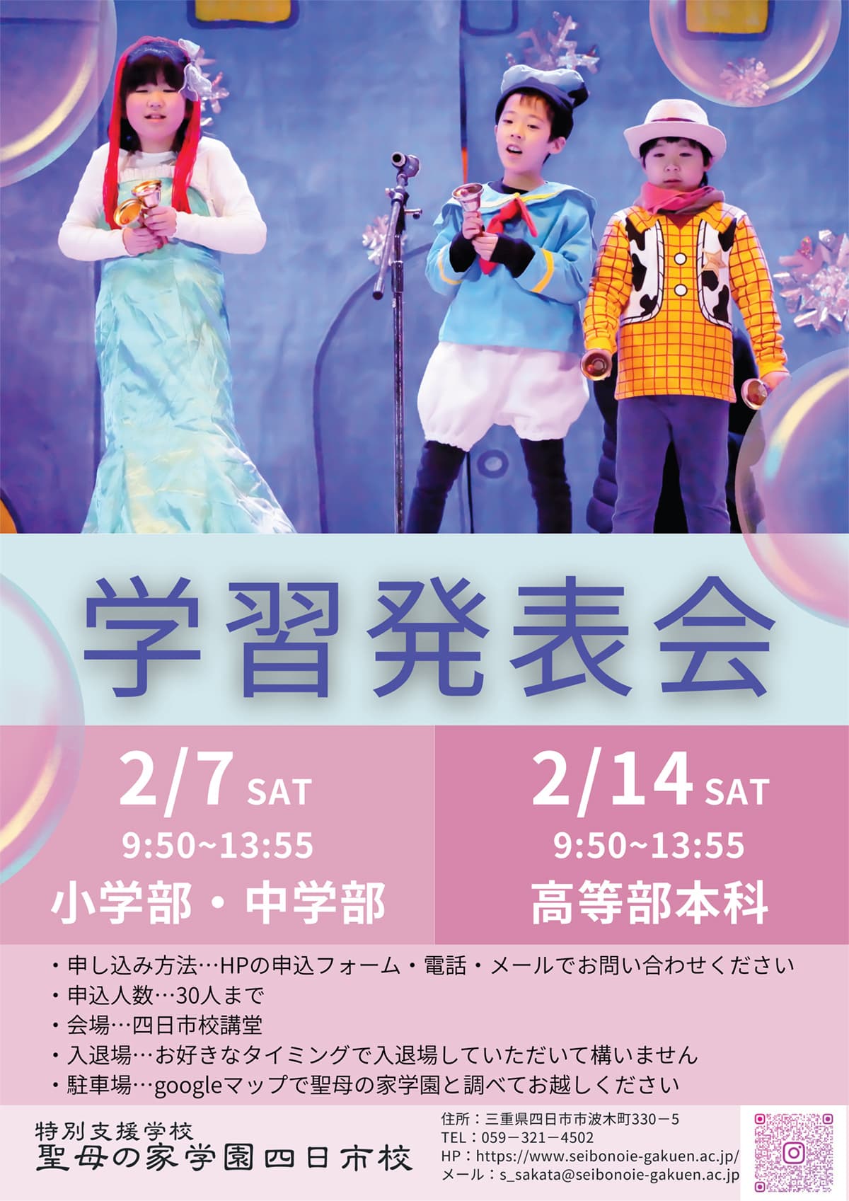 2月7日(土) 小学部・中学部 学習発表会 2月14日(土) 高等部本科 学習発表会 |