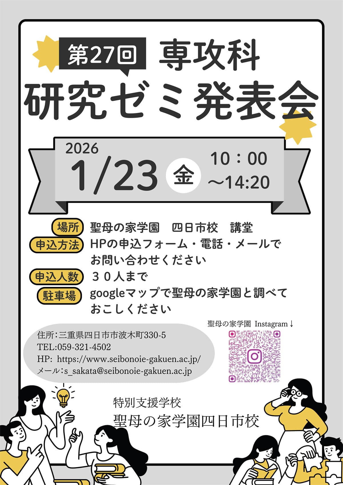〒510-0961 三重県四日市市波木町330-5 TEL.059-321-4502 FAX.059-321-4513 mail / office@seibonoie-gakuen.ac.jp